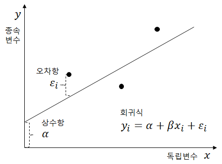 일차함수와 비교하자면 오차항이 추가가 되었다.