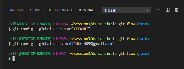 git config --global user.email"내 메일주소"