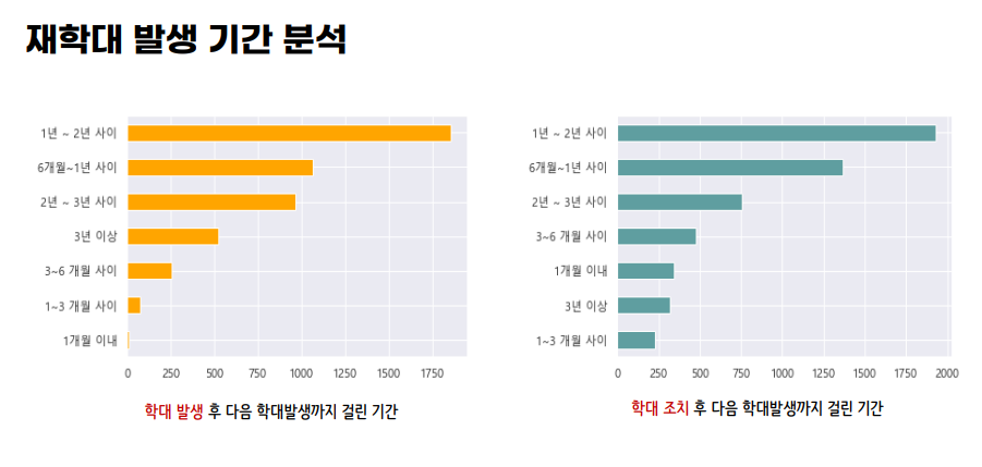 위 그래프는 아동학대에 관한 프로젝트를 진행하면서 데이터 전처리를 하기 전 인사이트를 도출하기 위해 수행했던 EDA이다. 보통 한 프로젝트에 시각화를 최소한 20개 이상을 진행해야. 목표를 제대로 정할 수 있다 생각한다.