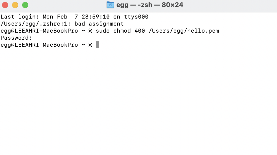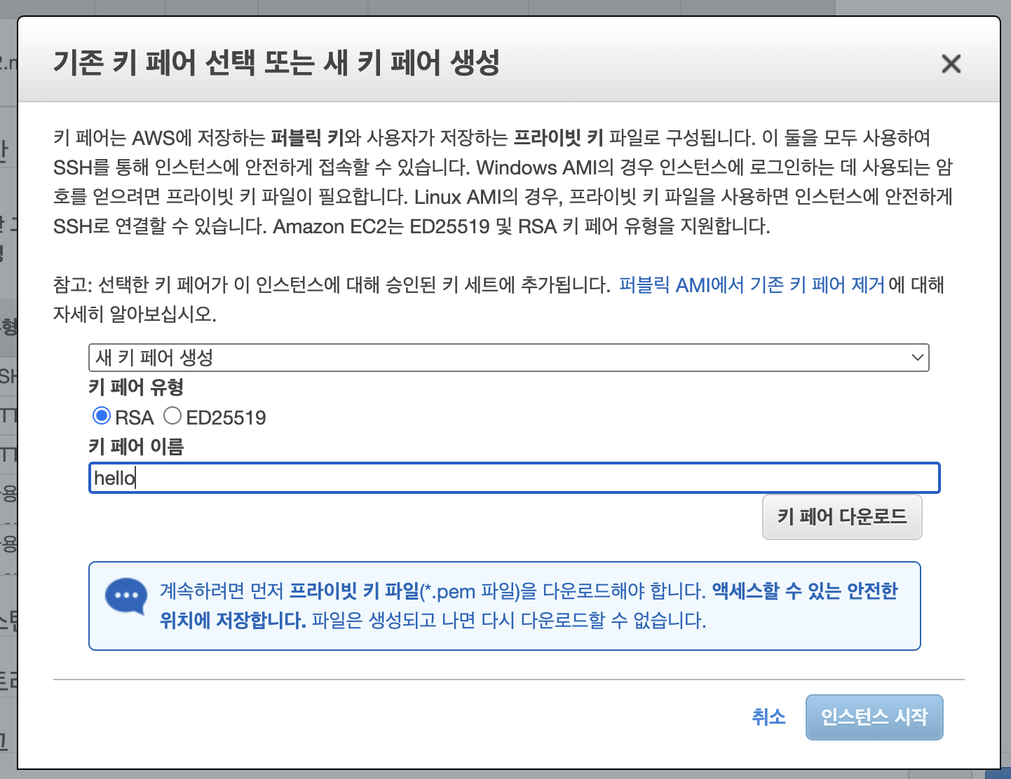 키 페어 이름이 곳 파일명 ! -> hello.pem