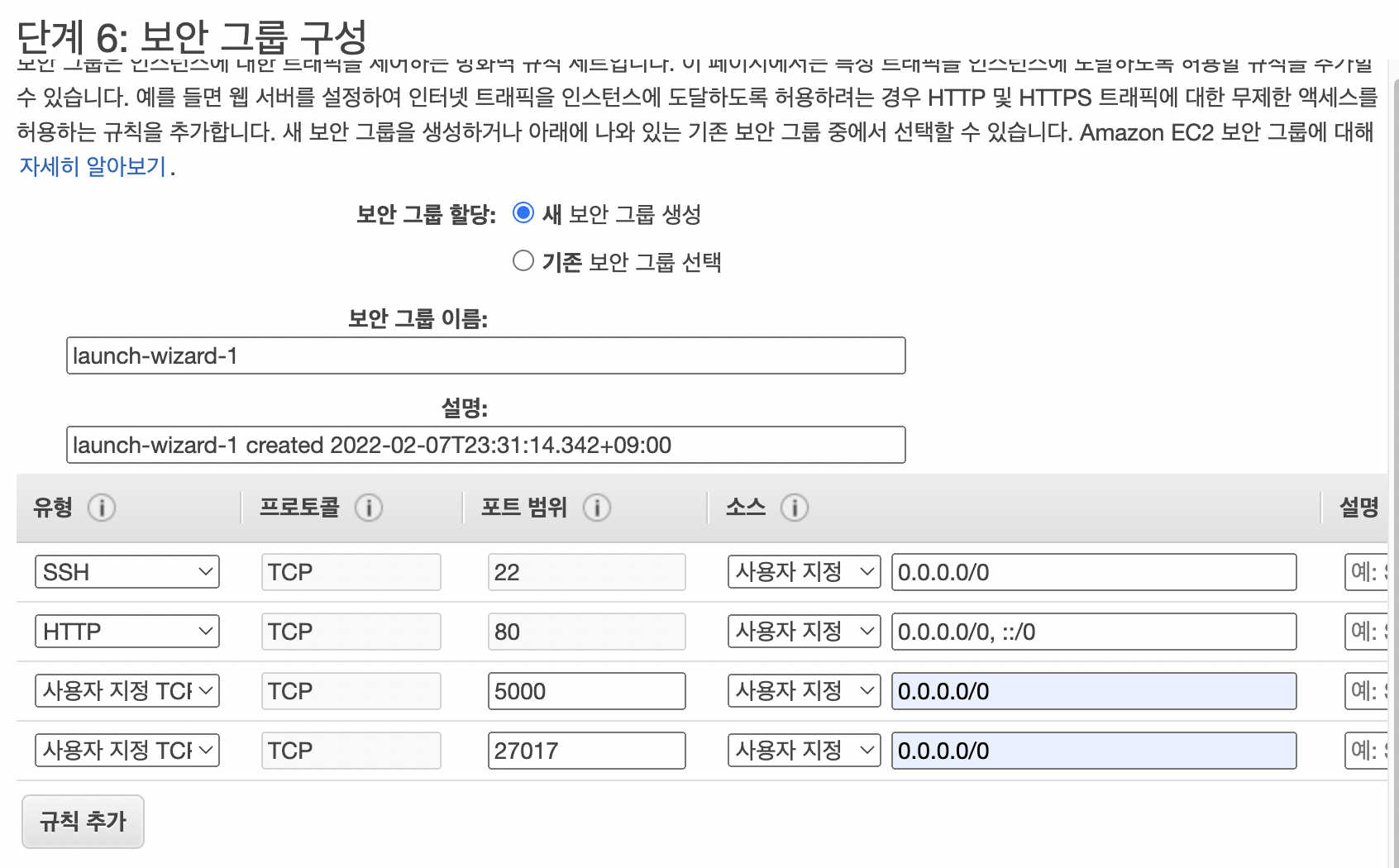 EC2에서 포트로 들어오는 요청을 받을 수 있게 설정해야한다.