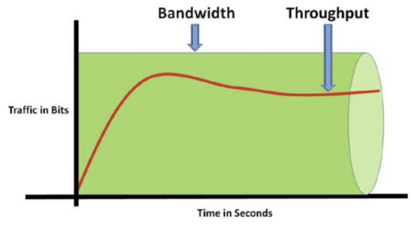 - 대역폭 (Bandwidth) : 주어진 시간 동안 네트워크 연결을 통해 흐를 수 있는 최대 비트 수