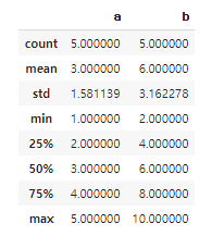 df = pd.DataFrame({'a': [1,2,3,4,5], 'b': [2,4,6,8,10]})